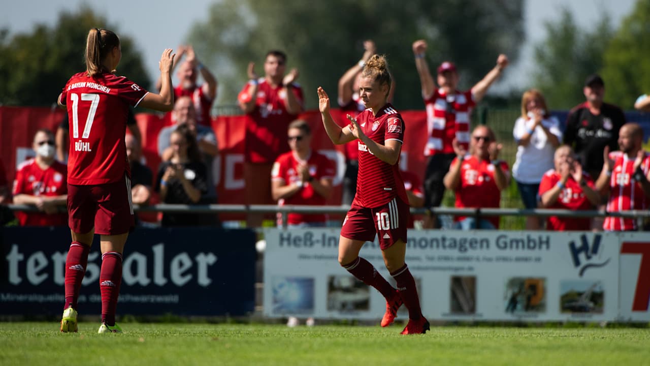 Im Video: Die FC Bayern Frauen auch ihr zweites Spiel in der Flyeralarm Frauen-Bundesliga gewonnen. Die Highlights.