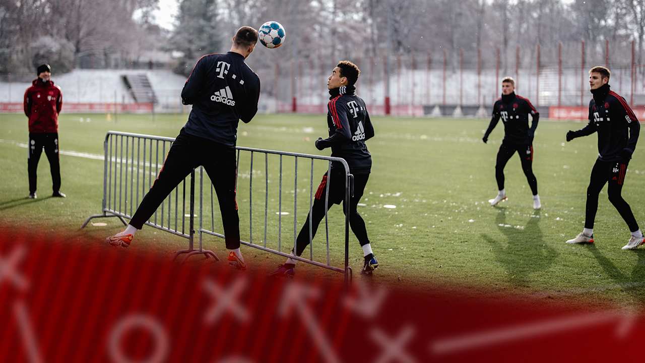 Exciting rallies at record champions training session - video of boom, boom Bayern doing football tennis.