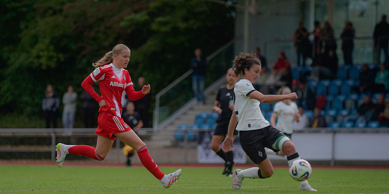 Kurz nach der Pause hatte Maria Plattner die große Ausgleichschance, scheiterte aber freistehend an Frehse. Im direkten Gegenzug erhöhte Suus van der Drift auf 0:2 (53.). Bayern warf in der Schlussphase alles nach vorne, blieb aber glücklos im Abschluss. Terakaj, Ernst und Plattner vergaben weitere Möglichkeiten. Am Ende blieb es bei der 0:2-Niederlage gegen eine konsequente Gladbacher Mannschaft. Am kommenden Sonntag trifft der FCB-Nachwuchs auswärts auf den VfR Warbeyen. Anstoß ist um 14 Uhr.