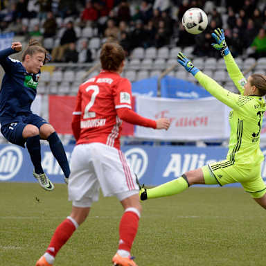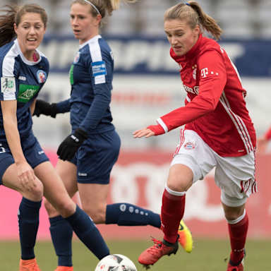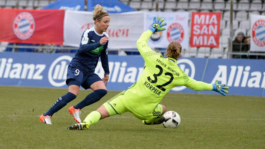 Eine Woche nach dem ungefährdeten Pokalsieg in Ibbenbüren kehrten Melanie Behringer und Stefanie van der Gragt in die erste Elf zurück. Die Münchnerinnen bekamen es mit körperlich starken und selbstbewussten Gästen zu tun, die zunächst die Initiative übernahmen und sich nach Standards erste Gelegenheiten erarbeiteten (6., 9.). In der 17. Minute umspielte Svenja Huth FCB-Torfrau Tinja-Riikka Korpela, brachte den Ball aber nicht aufs leere Tor.