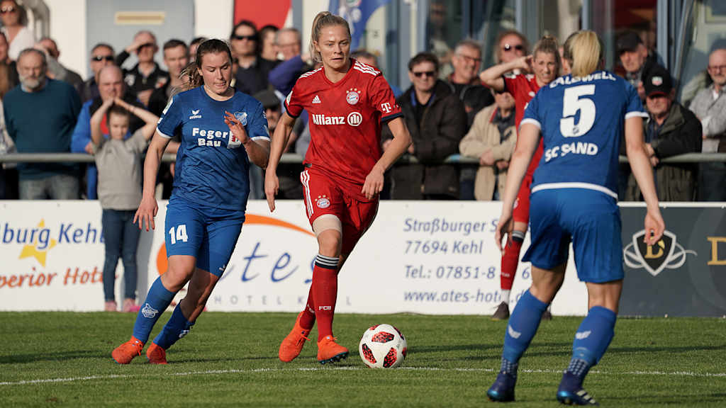 Nationaltorhüterin Laura Benkarth stand am Mittwoch zum ersten Mal seit ihrem Kreuzbandriss wieder in einem Bundesliga-Spiel im Tor. Auf der gegenüberliegenden Seite hatte ihre künftige Team-Kollegin Carina Schlüter, die im Sommer nach München wechselt, diesen Posten inne. Die Bayern kontrollierten die Partie von Beginn an, ließen Sand jedoch zwischendurch immer wieder ihr Spiel aufziehen. Somit konnten die Gastgeberinnen vor 1.300 Zuschauern im Sander Orsay-Stadion mehrmals Chancen kreieren. Bayern blieb trotz der Spielkontrolle und mehrerer Abschlüsse zu ungefährlich und so verwanelte vorerst Sands Nina Burger per Kopf 1:0 für die Heimmannschaft. Die Münchnerinnen erhöhten im Anschluss den Druck und Gina Lewandowski(30.) köpfte nach einer erstklassigen Flanke von Verena Schweers zum 1:1-Ausgleich, dem Pausenstand, ein.