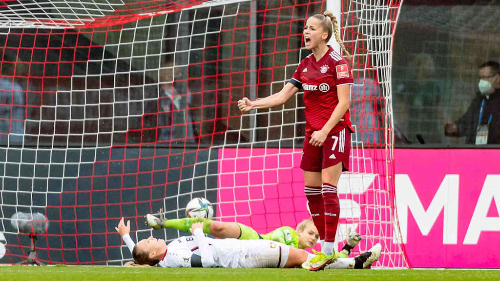 Ganz stark! Die FC Bayern Frauen melden sich mit einem Kantersieg aus der Länderspielpause zurück! Die Münchnerinnen haben am Samstagnachmittag zum Auftakt in zwei englische Wochen in der Flyeralarm Frauen-Bundesliga auch in der Höhe verdient mit 7:1 (5:0) gegen Bayer 04 Leverkusen gewonnen. Linda Dallmann (5. Minute) und Toptorjägerin Lea Schüller (13.) brachten die Heimelf im Stadion am FC Bayern Campus früh auf die Siegerstraße. Noch vor der Pause machten Maximiliane Rall (23.), Giulia Gwinn (26.) und erneut Schüler (29.) mit ihrem neunten Saisontor den Deckel drauf. Nach dem Seitenwechsel trugen sich die eingewechselte Viviane Asseyi (62.) und erneut Rall (64.) in die Torschützinnenliste ein. Den Ehrentreffer für die Leverkusenerinnen erzielte Amira Arfaoui (74.). Getrübt wurde der Erfolg jedoch von einer Verletzung von Stammtorhüterin Laura Benkarth, die in der 59. Minute ausgewechselt werden musste.