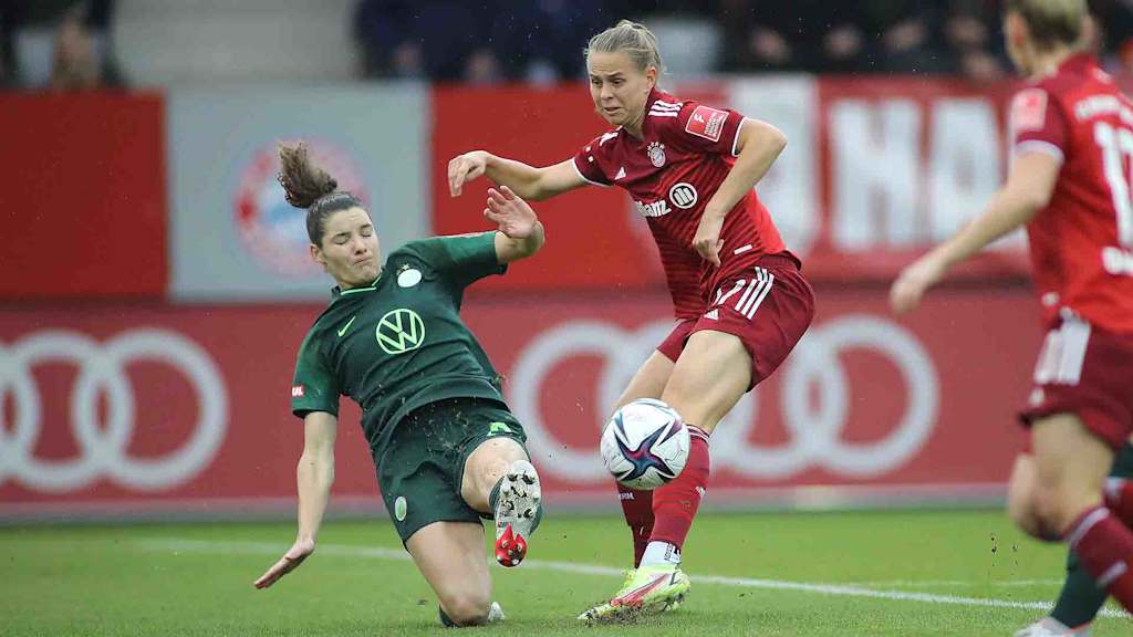 Bittere Niederlage im Topspiel für die FC Bayern Frauen. Die Münchnerinnen haben sich am Samstagnachmittag am achten Spieltag der Flyeralarm Frauen-Bundesliga trotz starker erster Hälfte dem VfL Wolfsburg mit 0:1 (0:0) geschlagen geben müssen. Kathrin Hendrich (69.) sorgte nach einem torlosen ersten Durchgang für den einzigen Treffer vor 1.931 Zuschauern im Stadion am FC Bayern Campus. Aufgrund der Niederlage büßten die Bayern-Frauen auch die Tabellenführung ein. Der Rückstand auf die Wölfinnen (19 Punkte) beträgt nach den ersten acht Spielen einen Zähler.