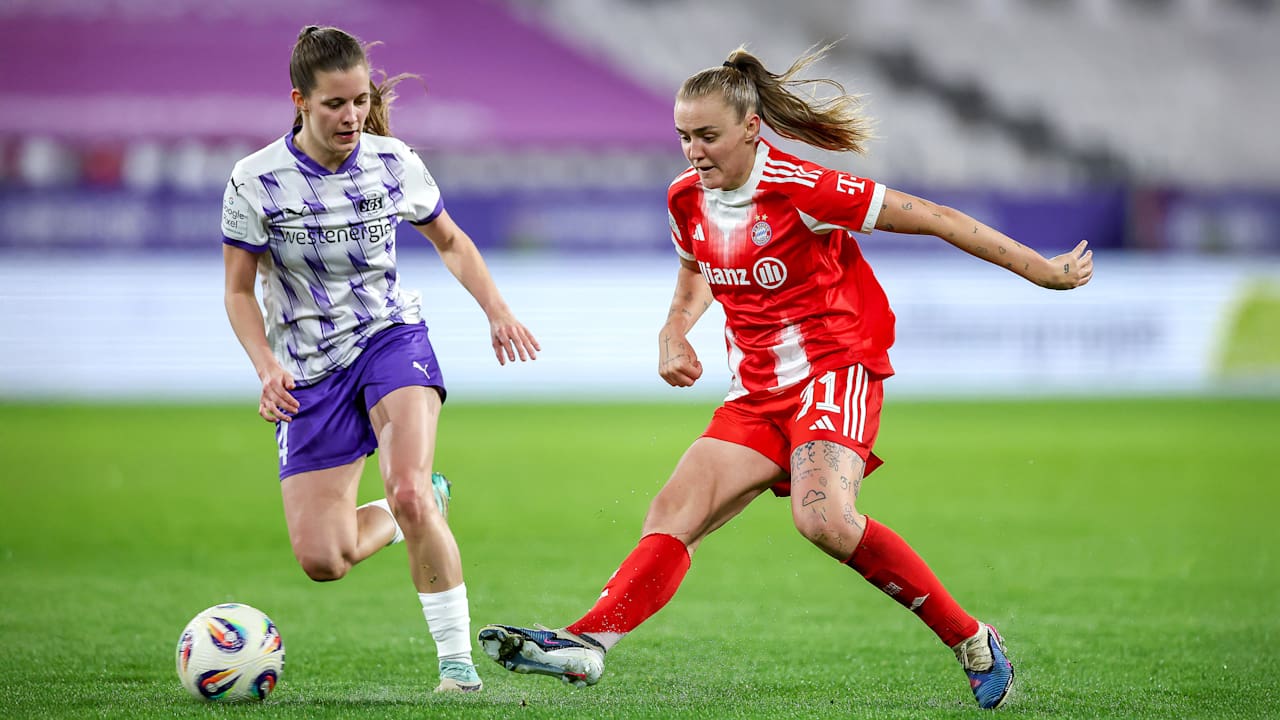 FC Bayern Frauen bauen ihre Siegesserie eindrucksvoll aus und festigen die Tabellenführung in der Google Pixel Frauen-Bundesliga! Das Team von Trainer José Barcala hat am Freitagabend klar mit 5:0 (2:0) bei der SGS Essen gewonnen. Früh brachte Pernille Harder (4.) die Münchnerinnen in Führung, ehe Linda Dallmann (9.) noch in der Anfangsphase auf 2:0 erhöhte. Nach der Pause sorgte Harder per Elfmeter (68.) für die Vorentscheidung, die eingewechselte Padilla Bidas (71.) und Imade (88.) schraubten das Ergebnis weiter in die Höhe. Ein rundum souveräner Auftritt der Bayern-Frauen!