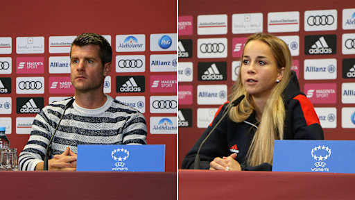 Jens Scheuer und Giulia Gwinn im Pressetalk vor dem UWCL-Spiel gegen Lyon