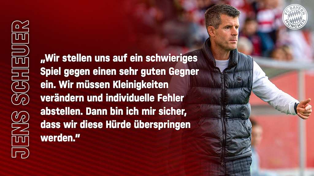 Hopp oder Top - am Samstag zählt im Pokal-Achtelfinale für beide Mannschaften nur ein Sieg. Dessen sind sich die Bayern bewusst und Cheftrainer Jens Scheuer freut sich auf die Herausforderung: „Pokalspiele sind immer ein bisschen was anderes als Bundesligaspiele. Es ist ein K.o.-Spiel. Beide Mannschaften müssen gewinnen, um eine Runde weiter zu kommen. Ein Unentschieden reicht keiner Mannschaft. Das ist schon mal ein Vorteil für uns, denn in der Liga ist jeder Gegner zufrieden, wenn er ein Unentschieden gegen uns holt“, so Scheuer.