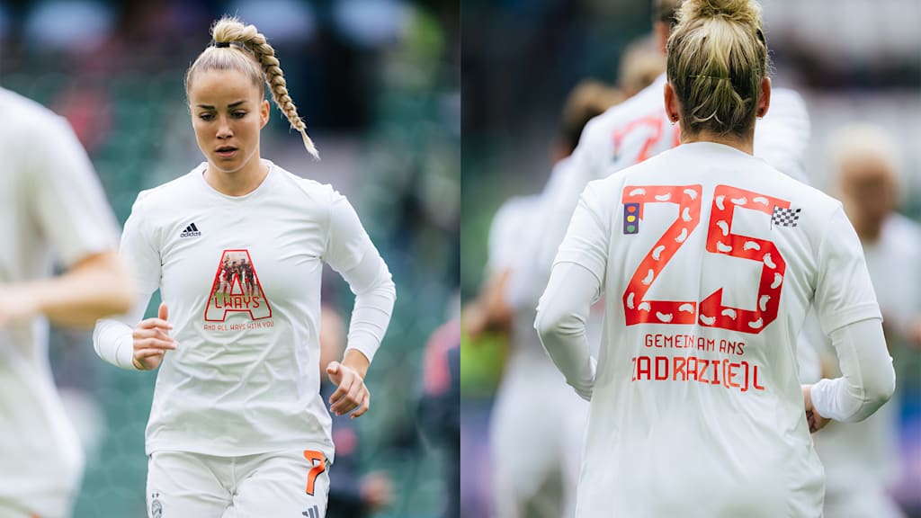 Before the game kicked off, Bayern expressed their support for midfielder Sarah Zadrazil, who recently suffered a cruciate ligament tear against Freiburg, by wearing shirts during the warm-up saying “ALWAYS and all ways with you!”.
