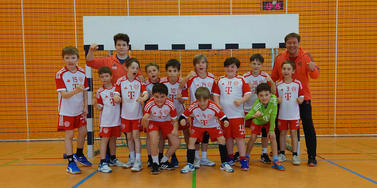 Für die E2 des FC Bayern München spielten: Arthur, Daniel, Jonas, Leopold, Marlon, Moritz, Nikola, Philip und Robin unterstützt von David, Fileas, Gregor und Leander aus der E1 und Felix, Maximilian, Julius und Theo von den Minis