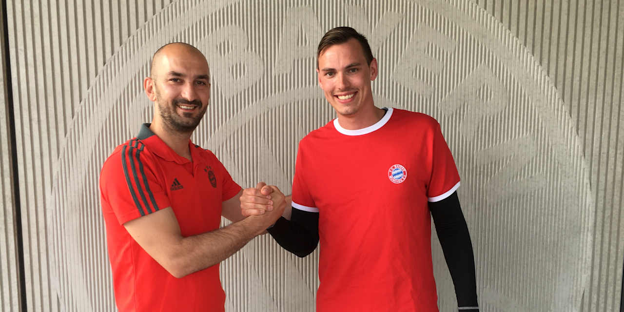 Der neue Trainer der Bazis, Danijel Jakovljevic, posiert stolz mit dem ersten Neuzugang der Bazis für die kommende Saison. Finn Engelking, 25 Jahre alter Polizeibeamter, wechselt zur Saison 2019/20 zum FC Bayern Handball. Der Torhüter ist kein unbeschriebenes Blatt, schaffte er doch gerade erst vor Monatsfrist mit der Zweitvertretung von Fürstenfeldbruck den Aufstieg in die Bayernliga.