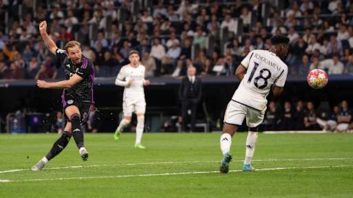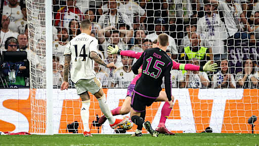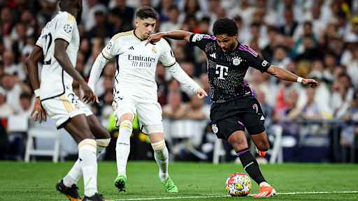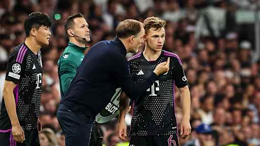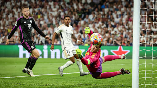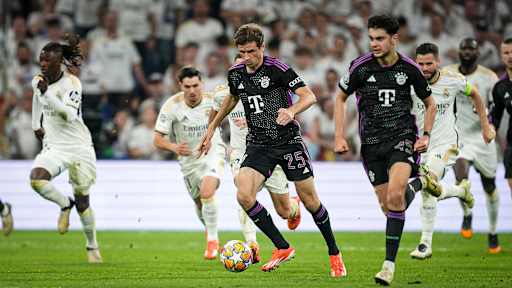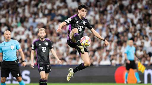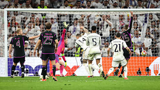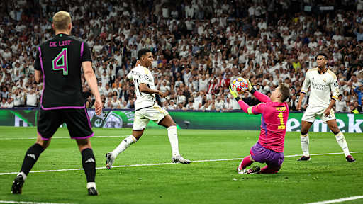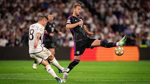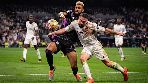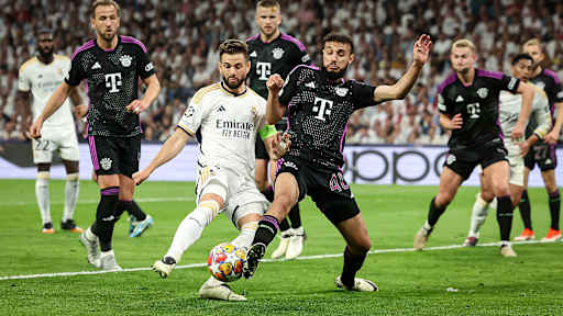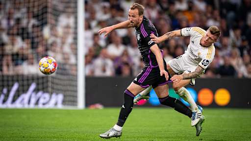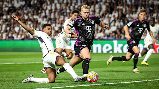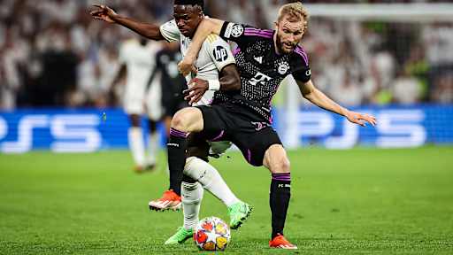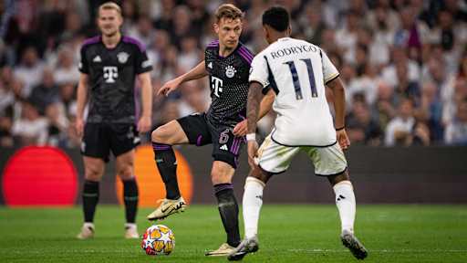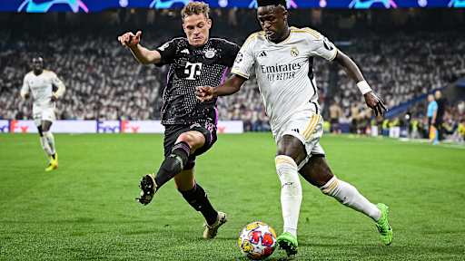- Zeige in voller Größe Joshua Kimmich im Zweikampf mit Real Madrids Vini Jr.