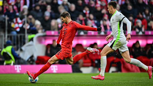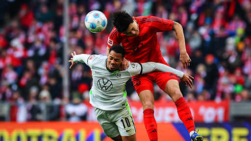 © Imago - Zeige in voller Größe Michael Olise (FC Bayern) beim Torschuss im Bundesliga-Duell gegen Wolfsburg