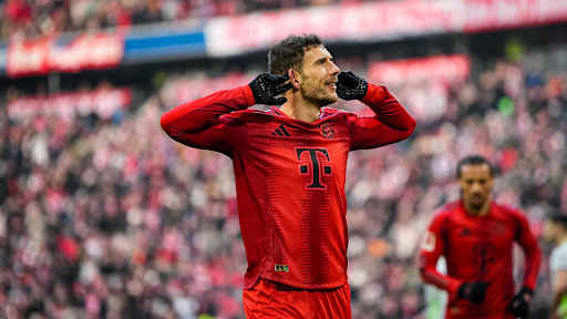 © FC Bayern - Zeige in voller Größe Leroy Sane, Michael Olise und Kollegen bejubeln ein Tor gegen Wolfsburg