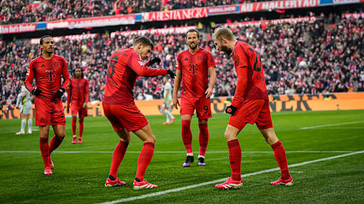 © Imago - Zeige in voller Größe Die Spieler des FC Bayern bejubeln ein Tor gegen den VfL Wolfsburg