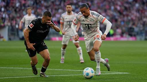 - Zeige in voller Größe Leroy Sane und Michael Olise bejubeln das 2:0 des FC Bayern im Bundesliga-Spiel gegen Borussia Mönchengladbach