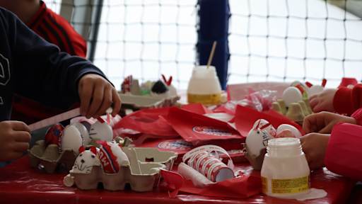 Kurz vor Ostern habe ich mich mit 30 meiner KIDS CLUB-Freunde zum Basteln in der Allianz Arena getroffen. Gemeinsam haben wir bärenstarke FC Bayern Osternester und kunterbunte Eier gestaltet. Dabei hatten wir jede Menge Spaß!