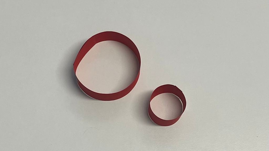 Drehe die beiden Papierstreifen zu kleinen Rollen, indem du jedes Ende des Streifens aufrollst.