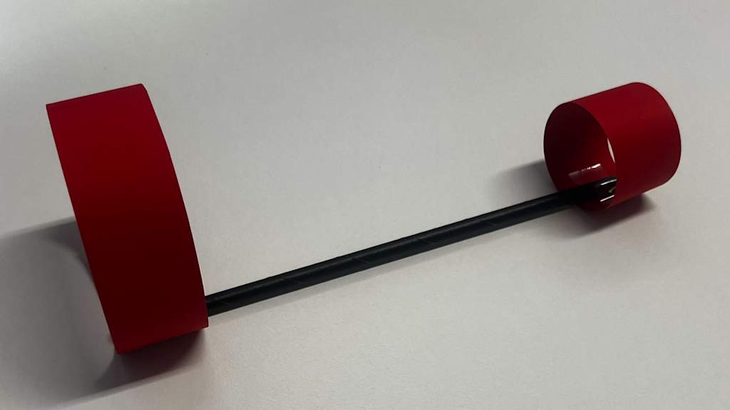 Befestige nun die beiden Papierrollen an den Enden des Strohhalms. Achte darauf, dass sie gleichmäßig an beiden Enden des Strohhalms sitzen und mit Tesa fixiert werden.