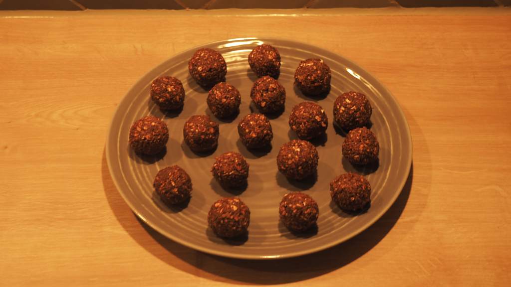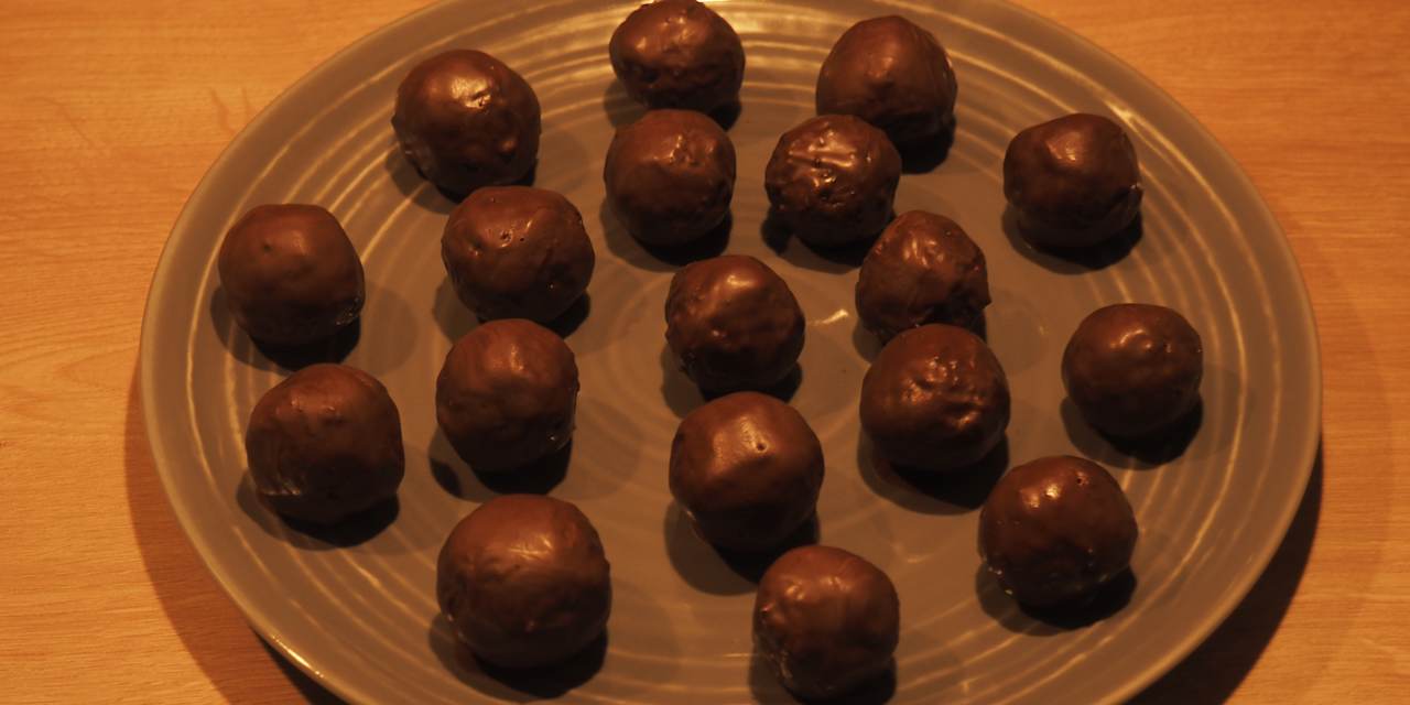 Sobald die Schokolade vollständig geschmolzen ist, nimmst du die Bällchen aus der Kühlung. Jetzt tauchst du die Kugeln (am besten mit einem Löffel) in die flüssige Schokolade, bis sie rundum überzogen sind. Anschließend stellst du sie wieder kalt, damit die Glasur fest wird. Und dann heißt es: genießen!