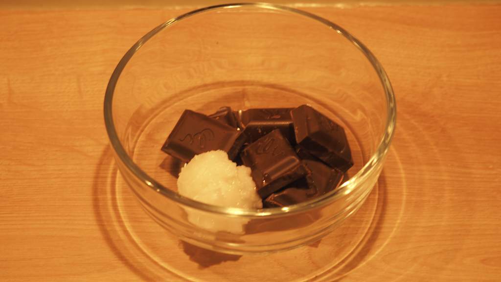 n der Zwischenzeit gibst du die dunkle Schokolade zusammen mit dem Kokosöl in eine kleine Schüssel und lässt beides in einem Wasserbad oder in der Mikrowelle schmelzen.
