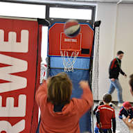 Vor dem Heimspiel unserer Basketballer habe ich mir einige coole Aktionen für die Teilnehmer ausgedacht. Gleich zu Beginn konnten die Kids ihr Können am Ball zeigen: Bei einem Freiwurfwettbewerb auf zwei kleine Körbe hatten wir eine Menge Spaß! Anschließend konnten die Kids bei meinem kniffligen Quiz ihr Wissen rund um den FC Bayern Basketball testen.