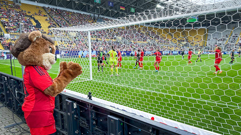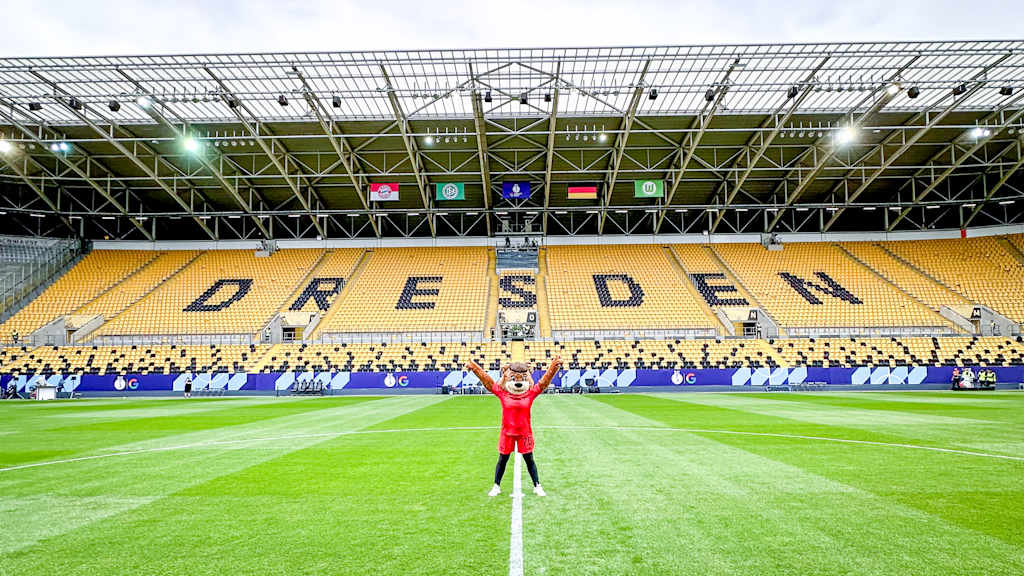 Bärenstarke Grüße aus Dresden! Gemeinsam mit meinen Mädels bin ich zum ersten Finale in dieser Saison gereist. Im Rudolf-Harbig-Stadion von Dresden ging es im Google Pixel Supercup gegen den Pokalsieger VfL Wolfsburg. 16.690 Zuschauer, darunter zahlreiche rot-weiße Fans, haben beiden Teams zugejubelt. Auch ich war hautnah mit dabei…