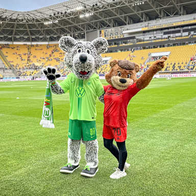 Vor dem Spiel habe ich einen alten Bekannten getroffen: Mein Freund Wölfi vom VfL Wolfsburg war natürlich auch wieder mit dabei, um seine Mannschaft zu unterstützen. Schön, dich wieder gesehen zu haben, Wölfi!