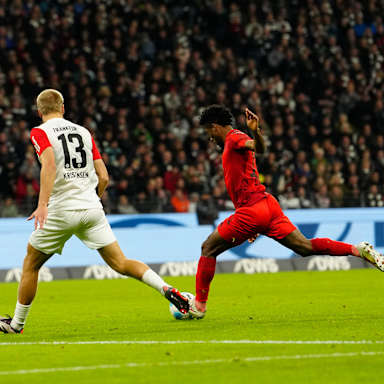 Unsere Mannschaft startet heute spielbestimmend in die Partie. Bereits nach zwei Minuten kommt Michael Olise zum ersten Abschluss. Nach 15 Minuten können meine Jungs dann zum ersten Mal jubeln: Nach einer schnell ausgeführten Ecke landet der Ball bei Thomas Müller. Unsere Nummer 25 legt quer auf Minjae Kim, der aus sieben Metern die Kugel unter die Querlatte knallt. Nach einem Konter gelingt der Eintracht mit dem ersten Torschuss in der 22. Spielminute der schnelle Ausgleich.