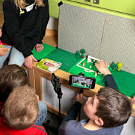 Zum Mittag wurde sich kräftig gestärkt bevor es kreativ weiterging: Die Kids drehten einen Stop-Motion-Film mit Legofiguren, die einen Elfmeter schossen. Sie nahmen Fotos und Tonaufnahmen auf, inklusive Torjubel und die Kommentatoren-Stimme und fügten alles zu einem bärenstarken Video zusammen.