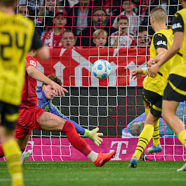 Von Beginn an ist die Intensität hoch – beide Teams agieren mit viel Tempo in der Offensive. In der 20. Minute ergibt sich die tolle Chance für meine Jungs. Verdeckt versucht es Leroy Sané aus 20 Metern per Flachschuss - abgefälscht wird die Kugel richtig gefährlich, der Dortmunder Keeper pariert im Nachfassen.