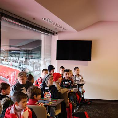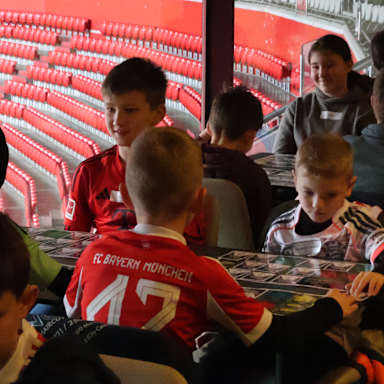 Aufgeteilt in zwei Gruppen durften wir für einige Stunden in eine Eventbox der Allianz Arena einziehen - mit direktem Blick aufs Spielfeld! Zuerst haben wir die Match Attax-Kartenpacks geöffnet und alles für die großen Turniere vorbereitet. Und dann ging’s los: In sechs Runden, konnten die Kids die Werte ihrer Karten vergleichen, sich packende Duelle am Spieltisch liefern und sich gegen immer neue Gegner ausprobieren.
