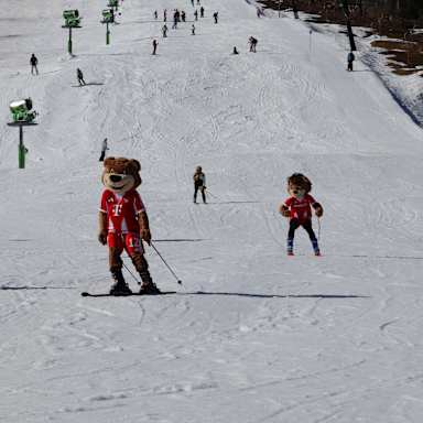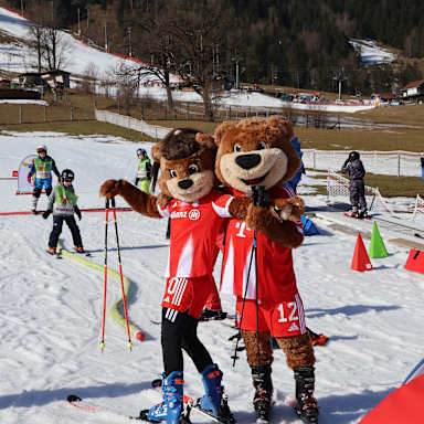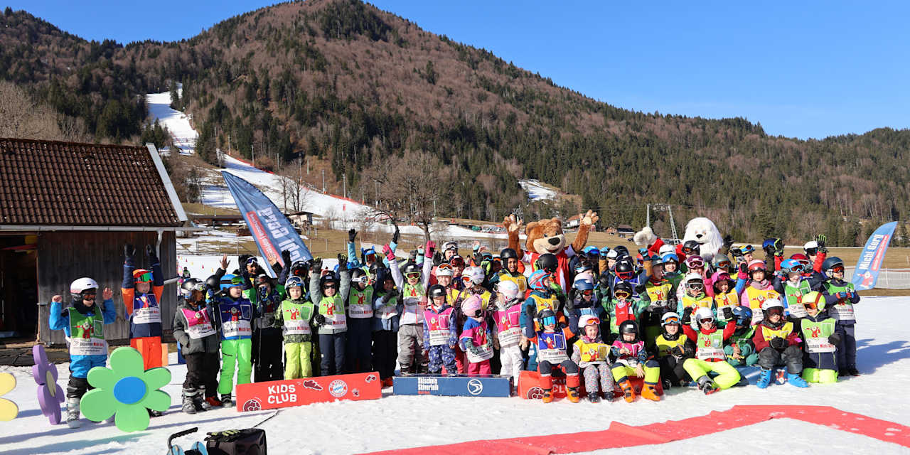 Für einen Teil der Kinder ging das Abenteuer schon um 08:00 Uhr los: Mit dem großen FC Bayern-Bus ging es von München nach Lenggries. Nach einer Stunde erreichten wir unser Ziel, das Skigebiet Brauneck/Lenggries. Dort haben sich alle Kinder gemeinsam in der Kids Welt versammelt und wurden in verschiedene Gruppen eingeteilt. Als Team Musiala, Team Kane, Team Kimmich und acht weitere ging es direkt auf die Piste – voller Energie und Vorfreude!