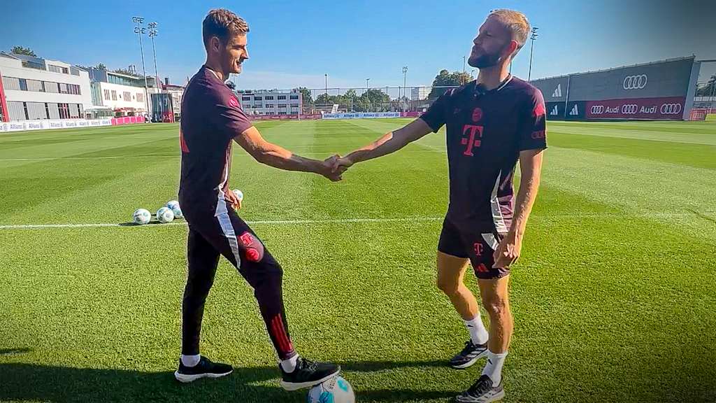 Konrad Laimer und Josip Stanišić bieten sich in fünf unterschiedlichen Challenges die Stirn – wer von beiden nach dem Lattenschießen, Tik-Tak-Toe und weiteren Aufgaben den Platz als Sieger verlässt, seht ihr hier!