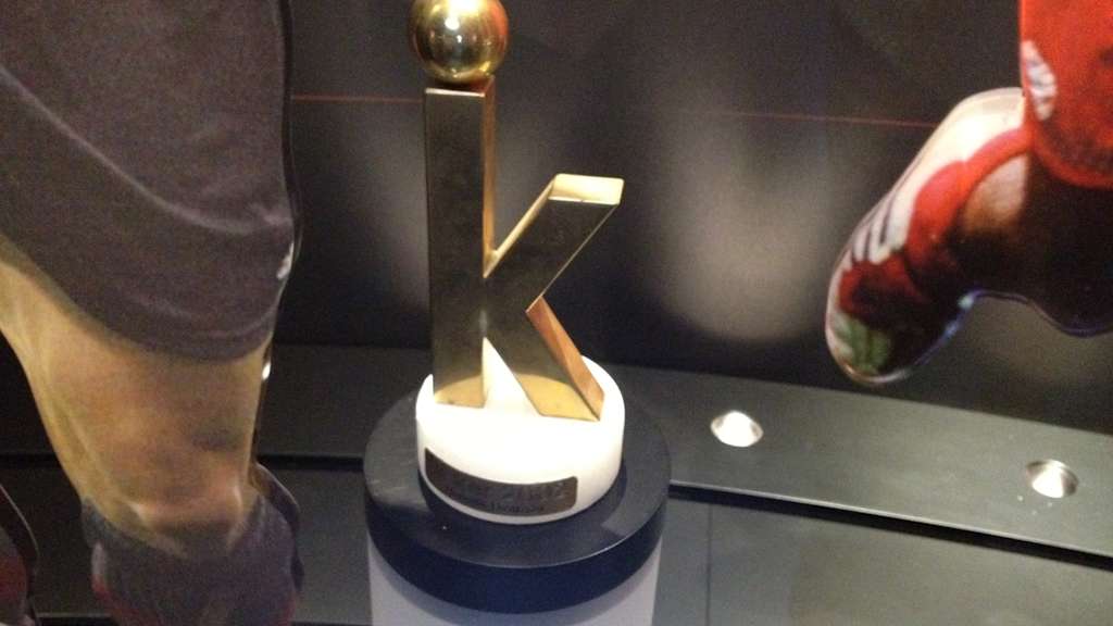 Die „Kopfball-Woche“ von Bixente Lizarazu ist neben den 18 Titeln, die der Welt- und Europameister mit dem FC Bayern sammelte, unvergessen. Passend zum Jubiläum dieser verrückten Zeit soll daher auch das Exponat der Woche der FC Bayern Erlebniswelt dem heute 45-Jährigen gewidmet werden. In der Hall of Fame, der er neben 15 weiteren besonders um den Verein verdienten Spielern natürlich angehört, ist das goldene „K“ ausgestellt, das Lizarazu vom Fachmagazin „kicker“ im Jahr 2005 verliehen bekam. Nicht als Kopfballungeheuer, sondern als bester Liga-Spieler auf der „Außenbahn defensiv“. Das war er ja ganz nebenbei auch noch…