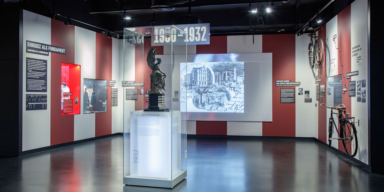 Das neue FC Bayern Museum nimmt weiter Gestalt an: Der zweite Umbauabschnitt ist inzwischen abgeschlossen. Die zusätzlich gewonnenen Flächen direkt zu Beginn der Ausstellung wurden im Rahmen des neuen Konzepts gestaltet. So wird den Besucherinnen und Besuchern ein spannender Überblick über die historischen Vorläufer des Fußballspiels geboten. Daran anschließend befasst sich neuerdings ein eigener Bereich ausschließlich mit der Gründung des FC Bayern München im Jahr 1900 und den daran beteiligten Personen. In Anlehnung an den historischen Gründungsort, das Café Gisela, ist dieser Bereich im Kaffeehaus-Stil gestaltet. Die Anfangsjahre der Vereinsgeschichte bis zur ersten deutschen Meisterschaft 1932 sind das Thema der nächsten neuen Zeitkoje, die mit der rot-weißen Raumgestaltung den damaligen Wechsel auf die bis heute aktuellen Vereinsfarben visualisiert. Das neue Konzept sieht vor, dass das jeweilige Zeitgefühl mittels graphischer Elemente, Bilder sowie Clips visualisiert wird – das lässt die Fans noch tiefer in die Historie eintauchen.