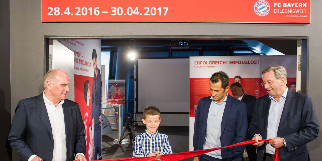 "When I grow up I want to be a professional footballer." Lots of kids dream of stepping onto a football pitch as a pro. That includes Janis, who cut the ribbon to open the FCB Erlebniswelt’s new special exhibition and is keen to follow in the footsteps of his heroes Thomas Müller and David Alaba. Club president Karl Hopfner plus FC Bayern legends Uli Hoeneß and Hasan Salihamidžić know how it feels to live the dream. A round-table discussion with former media director Markus Hörwick focused on the road from talented youngster to stardom.