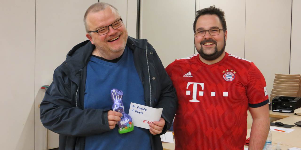 Am Ende behauptete sich mit Thomas Reich ein "alter Bekannter" im A-Finale, der den ersten Preis aus der Hand von Turnierleiter Marco Häuser (beide im Titelfoto) in Empfang nehmen konnte. (Wengler)