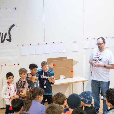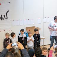 Ingesamt kamen in diesem Jahr 70 Kinder mit ihren Eltern ins Anton-Fingerle-Bldungszentrum, um sich in zwei parallel stattfindendenTurnieren miteinander am Schachbrett zu messen. Eines der Turniere war für Mannschaften bestimmt, die sich aus Kindern der Trainingsgruppen der Schachabteilung zusammensetzten. Die „FC Bayern Schach Kids“ bildeten 7 Mannschaften und spielten ein Vollrundenturnier. Natürlich nicht überraschend, dass die Kinder aus den am weitesten fortgeschrittenen Trainingsgruppen am Ende in der Tabelle vorn lagen. Spaß hatten aber sichtlich alle und das war zweifelsohne auch das Wichtigste. Und in dieser Hinsicht waren auch die insgesamt 10 Schulmannschaften, die sich aus Kindern der vom FC Bayern an Münchner Grundschulen betriebenen Schach-AGs zusammensetzten, ganz vorne mit dabei! Für einige Kinder war es das erste Turnier ihres Lebens überhaupt und damit eine ganz wichtige Erfahrung über den Tellerrand der eigenen Schule hinaus. Sportlich am besten schlugen sich die Teilnehmer der Grundschule an der Knappertsbuschstraße, die am Ende sogar mit zwei Teams in Führung lagen, den „Knappertsbusch Löwen“ und den „Knapperstbusch Tigern“. Auf dem 3. Platz ließ die 1. Mannschaft der Grundschule an der Weißenseestraße aufhorchen. Applaus bekamen aber alle Kinder bei der Siegerehrung, denn neben den Sachpreisen für die jeweils drei erstplatzierten Mannschaften gab es für alle Kinder, die das Turnier erfolgreich abgeschlossen hatten, eine der beliebten Teilnehmermedaillen.