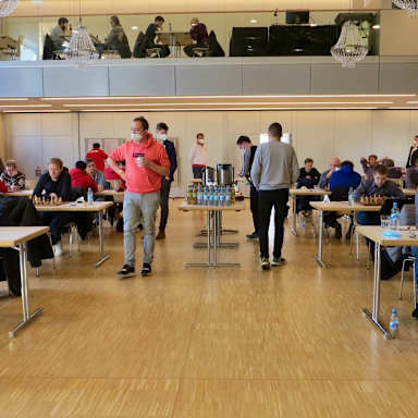 Zwar dauerte es auch heute ein ganze Weile, bis sich in einigen Partien klare Vorteile abzeichneten, dann aber ging es Schlag auf Schlag. Den Anfang machte Martin Lokander, dessen spektakuläre Partie von gestern im Internet gerade die Runde macht. Das Titelfoto entstammt genau dieser Partie. Heute konnte er sich relativ problemlos durchsetzen, ohne dass es dafür auch nur annähernd ähnlichen Komplikationen wie am Vortag bedurfte. Auch Jaime Santos Latasa wirkte wieder sehr souverän und überspielte seinen Gegner im Mittelspiel. Damit war eine gewisse Vorentscheidung bereits gefallen. Die Führung weiter ausbauen konnten letztlich Michael Fedorovsky und Valentin Dragnev. Das einzige "Gegentor" des Wochenendes kassierte der FC Bayern am Brett von Linus Johansson. Aber halb so schlimm. Schließlich konnte Nico Georgiadis nach zähem Ringen noch einen weiteren vollen Erfolg für die "Roten" verbuchen und den 6-2 Endstand herstellen.
