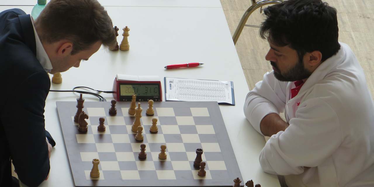 Titelfoto: "Saisonschlusspunkt" im wahrsten Sinne des Wortes: Linus Johansson hat den gegnerischen König im Visir. Wenig später gewann er seine Partie zum 5-3 Endstand.