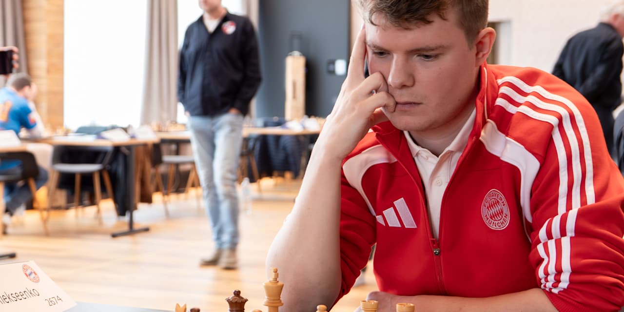 Ähnlich spannend verlief auch der Sonntag. An Brett 8 schnell in Rückstand geraten, lief der FC Bayern lange einem Rückstand hinterher. Für den wichtigen Ausgleich sorte an Brett 1 Kirill Alekseenko (im Titelfoto), der das Duell der Spitzenspieler gegen Volodar Murzin für sich entschied. Sicher unnötig dann der erneuete Rückstand an Brett 2, doch waren auch danach sogar noch Siegchancen da. In den verbleiben drei Partien bemühten sich Linus Johansson, Valentin Dragnev und Joseph Girel jeweils um einen vollen Punkt, den schlussendlich Joseph Girel dann auch bekam. Ein weiteres 4-4 also, womit sich die Mannschaft zunächst erst einmal im Mittelfeld der Tabelle einreiht.