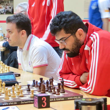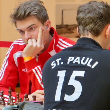 Zum Abschluss der Saison standen noch einmal drei Runden auf dem Programm, wobei es am Freitag zunächst gegen den SV Deggendorf ging. Das Team aus Niederbayern spielte ebenfalls eine starke Saison und war der erwartet schwere Gegner. Trotz einiger Chancen endeten alle acht Partien nach teilweise langem Kampf remis, so dass die Punkte geteilt wurden. Eine ebenso „harte Nuss“ war dann am Samstag die Mannschaft des Hamburger SK, die am Vortag im hanseatischen Lokalderby den FC St. Pauli mit 7-1 von den Brettern gefegt hatten. Auch gegen die Hamburger entwickelte sich ein zähes Match beim dem schließlich erst in den letzten beiden noch laufenden Partien die Entscheidung fiel. Dabei gelang Philip Lindgren an Brett 8 mit einer starken Partie ein nicht unbedingt erwarteter Erfolg, den nach fast sechsstündiger Spielzeit Rasmus Svane für die Hamburger gerade noch ausgleichen konnte. Eine leistungsgerechte Punkteteilung also am Ende auch hier. Am Sonntag wäre nach Lage der Dinge maximal noch ein Punkt gegen den nicht in Bestbesetzung antretenden FC St. Pauli nötig gewesen, um die 4. Tabellenplatz endgültig zu sichern, aber es sollte noch einmal richtig „klingeln“. Nachdem sich Philip Lindgren, der am Vortag noch grandios gewonnen hatte, diesmal einen Ausrutscher leistete und kurz vor der Zeitkontrolle verlor, lief anschließend alles in Richtung der „Roten“. An den Brettern 2 bis 7 gab es am Ende durchgängig volle Punkte, so dass zum Saisonabschluss noch einmal ein deutlicher Sieg zu Buche stand.