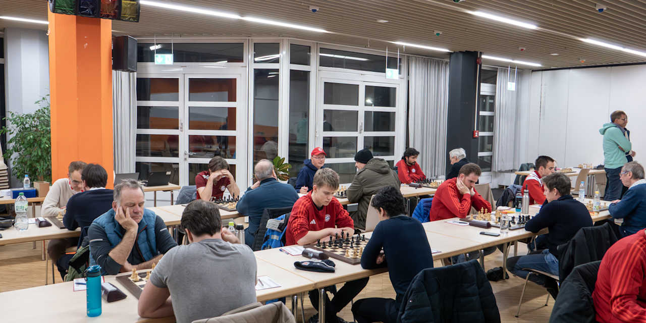 Auch die Sechste spielte mit nur mit 4 Stammspielern und ein zähes Ringen um den Erfolg war zu erwarten gewesen. Während es an vorne gut lief – 3 Siege und 2 Unentschieden – gingen die Partien an den Brettern 6 und 7 an die Gäste der SG Schwabing München Nord 2. Lange und zäh, mit wechselnden Stellungsvorteilen, wurde am 8. Brett gerungen. Beide Spieler machten in einem Turmendspiel eine neue Dame und es wurde unübersichtlich. Schließlich hatte Max Sager dabei einen Mehrbauern, aber auf der Randlinie konnte er ihn nicht verwandeln und kurz vor Mitternacht endete die Partie Remis.